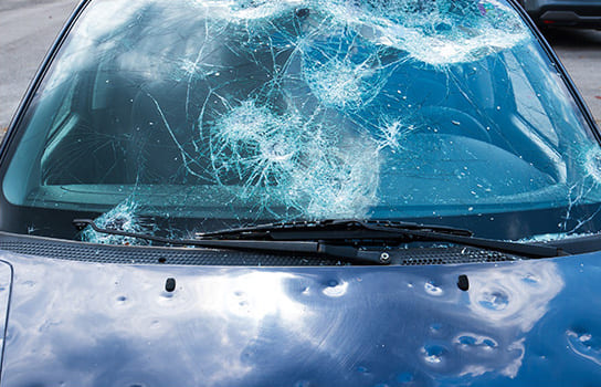 雹が降るとフロントガラスに小さなキズやヒビが入ることがあります。これらのキズは視界を妨げるだけでなく、時間が経つと大きな亀裂に進展することもあります。早めの修理や交換が安全な運転を維持するために重要です。