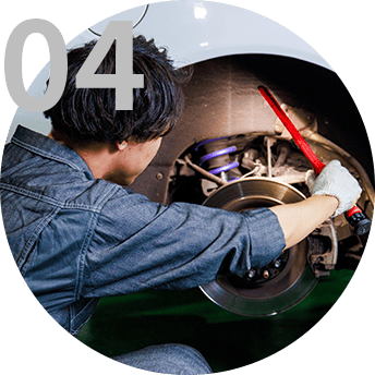 ブレーキシステムの点検・修理を行い、安全な走行を確保します。ブレーキパッドやローターの摩耗状態を確認し、必要に応じて交換します。ブレーキフルードの交換も行い、最適なブレーキ性能を維持します。安心してお乗りいただけるようサポートします。